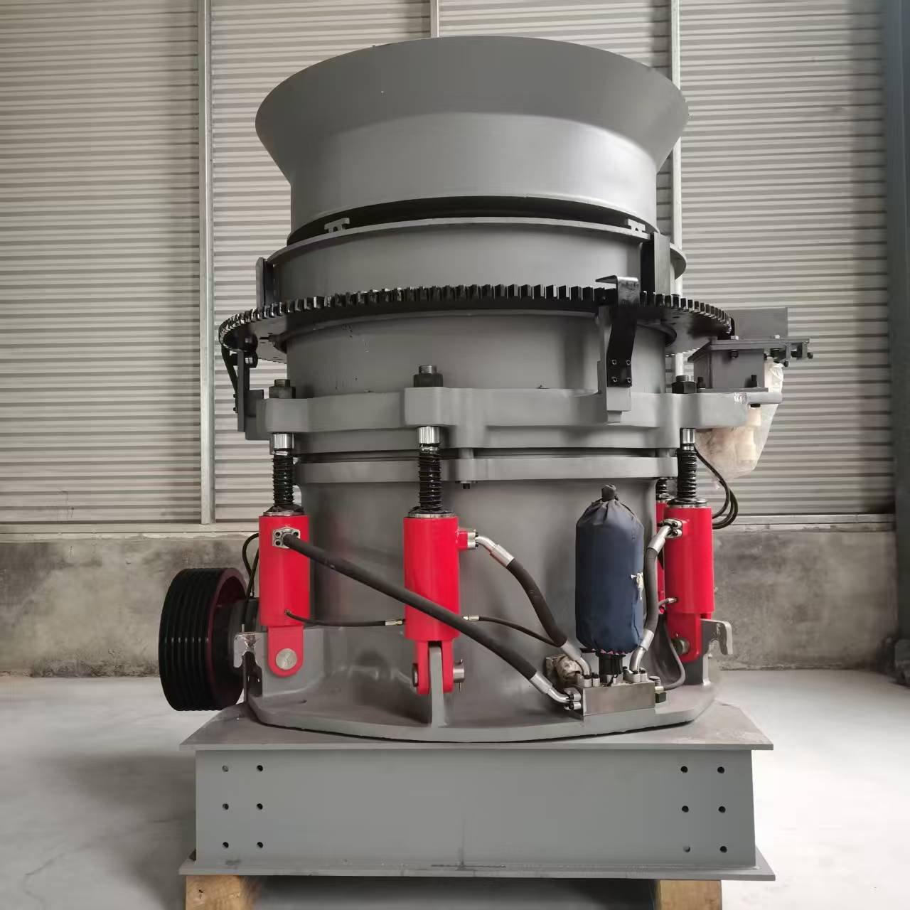 The frame is a rigid four-wall structure with openings at the top and bottom. It is used to support the eccentric shaft and withstand the reaction force generated during crushing. Therefore, it must have sufficient strength and rigidity.